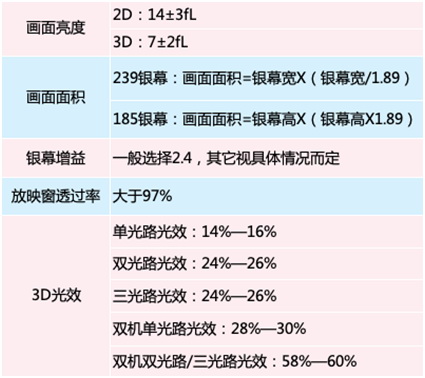 我們知道,為了保證電影放映效果,美國(guó)DCI(數(shù)字電影倡導(dǎo)組織)制定了銀幕放映亮度標(biāo)準(zhǔn):2D畫(huà)面亮度為14±3fL;3D畫(huà)面亮度為7±2fL。而是否能達(dá)到這個(gè)標(biāo)準(zhǔn),放映機(jī)的輸出亮度發(fā)揮著至關(guān)重要的作用。