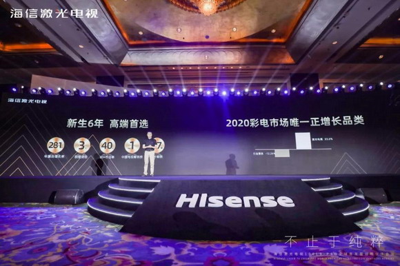6年來,海信激光電視解像度從1080P到2K、4K,再到雙色4K、全色4K;從單色光源到雙色光源,再到全色光源,海信激光電視年復(fù)合增長率高達(dá)281%,進(jìn)駐別墅家庭就超過3萬個(gè)。2019年,海信激光電視在80+市場占有率近40%,中怡康2020年1-6月線上線下整體推總數(shù)據(jù)顯示,彩電行業(yè)整體銷量同比下滑12.26%,海信激光電視銷量逆勢上漲33.6%,成為彩電市場唯一正增長的產(chǎn)品品類。