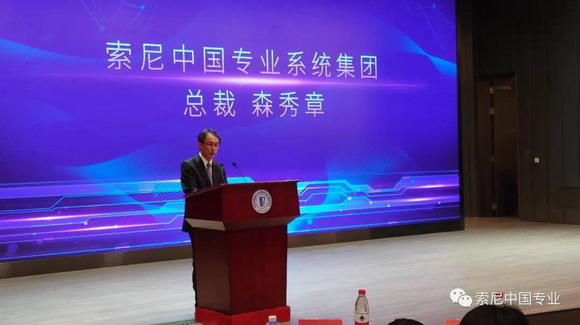 在工信部、北京市、協(xié)同中心等領(lǐng)導(dǎo)相繼發(fā)言宣布政策方向和市場發(fā)展計(jì)劃后,索尼中國專業(yè)系統(tǒng)集團(tuán)總裁森秀章代表索尼公司發(fā)言。