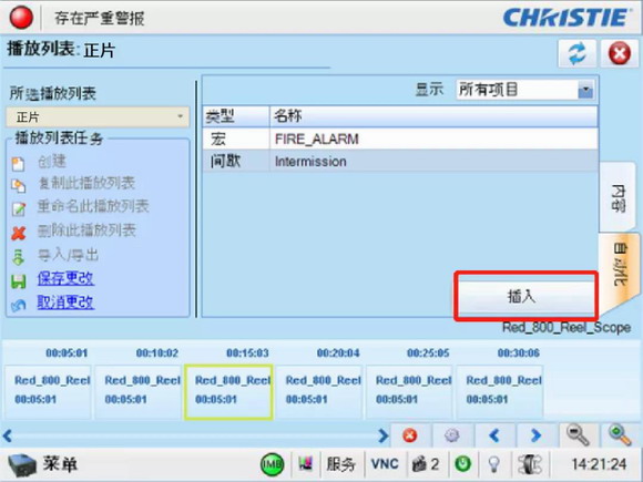 4 選擇位于播放列表窗口底部時(shí)間線中的內(nèi)容。例如在第三個(gè)節(jié)目中需要停頓,則在顯示列表中選擇“間歇 Intermission”,點(diǎn)擊“插入”