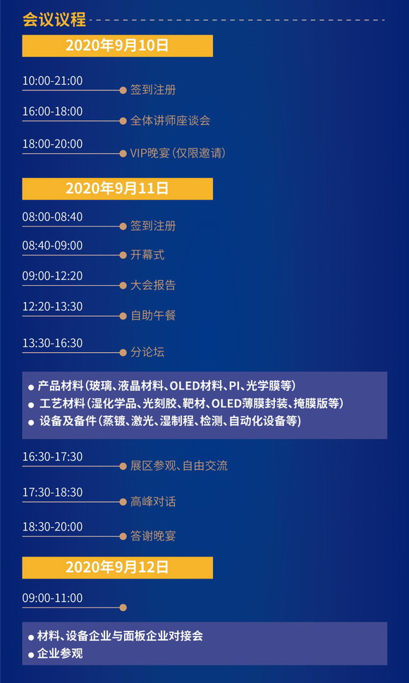 2.產(chǎn)品材料(玻璃、液晶、OLED材料、PI、光學(xué)膜等)、工藝材料(濕化學(xué)品、光刻膠、靶材、FMM等)、設(shè)備及備件三場(chǎng)專題分論壇,與會(huì)嘉賓與領(lǐng)軍企業(yè)一同深入探討新材料、新設(shè)備的發(fā)展趨勢(shì)、加強(qiáng)產(chǎn)業(yè)鏈合作;