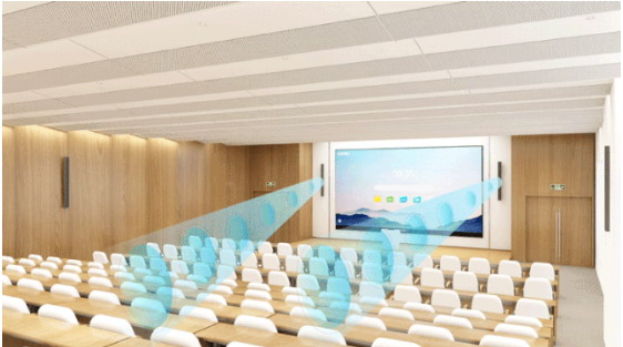 有源音柱采用陣列音響,搭載波束成形技術(shù),可讓音柱輸出的聲音向指定方向傳播,聲音的垂直指向可被調(diào)整,有效減少不必要的聲音能量損耗和反射,提高教室內(nèi)的聲場均勻度,很好地避免了擴音過程產(chǎn)生的混響雜音。就算是在大型階梯教室上課,第一排的學生不再感受“震耳欲聾”的體驗,最后一排的學生也能清晰聽到教學內(nèi)容,不再聽漏老師上課的每一句話,讓學生上課更投入,幫助老師提升授課質(zhì)量。
