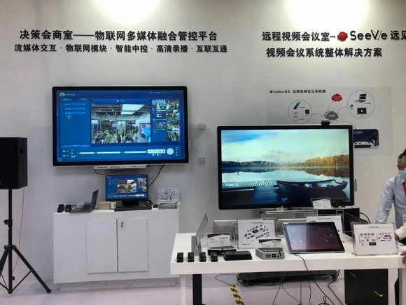 互聯(lián)網(wǎng)的高速發(fā)展、便捷高效的會議溝通成為企業(yè)良性運(yùn)轉(zhuǎn)的重要保證。尤其在面臨多人、異地甚至跨國會議場景時,更需要一個穩(wěn)定可靠、高質(zhì)高效的遠(yuǎn)程視頻協(xié)作解決方案。此次展會推出的SeeVe遠(yuǎn)程視頻會議系統(tǒng)可實(shí)現(xiàn)多方異地遠(yuǎn)程同屏協(xié)作,滿足會議平板書寫共享,屏幕共享,白板互動,通過平板在線批注,實(shí)現(xiàn)多方同步標(biāo)記重點(diǎn),并支持各類型文件文檔異地共享和會議預(yù)約。