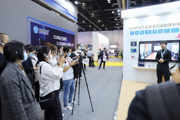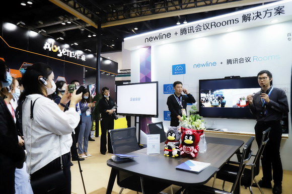 newline+騰訊會議Rooms解決方案是最火爆的展區(qū),觀眾期待一睹TC系列交互屏的獨(dú)特魅力,它是首款通過騰訊會議專業(yè)認(rèn)證的交互屏,9月10日剛剛問世,是newline與騰訊攜手革新云會議的重量級新品,F(xiàn)場演示了北京與深圳的視頻會議與遠(yuǎn)程協(xié)作,只需非常簡單的創(chuàng)建與加入,就能快速開啟視頻會議。這一方案背后是多平臺協(xié)同、AI賦能、安全體系、云原生架構(gòu)等軟件優(yōu)勢,以及“All in One”一體化設(shè)計、4K UHD超高清、超過120% sRGB廣色域、專屬特制攝像頭隱私蓋板等硬件優(yōu)勢。newline TC系列交互屏讓企業(yè)用戶暢享軟硬件一體的全場景便捷會議。