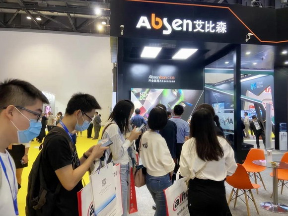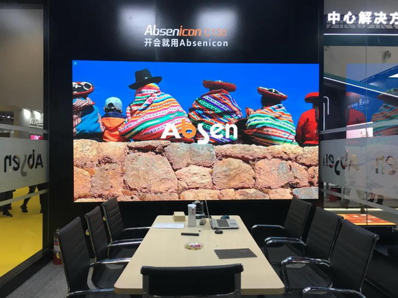 位于展位的左前方,艾比森Absenicon2.0高端會(huì)議一體機(jī)打造了一個(gè)真實(shí)的會(huì)議室場景,供現(xiàn)場觀眾沉浸式體驗(yàn)。