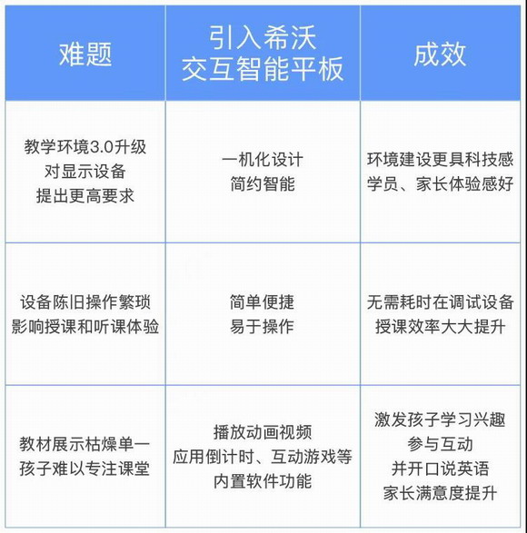 自2020年初起,愛貝英語新校區(qū)統(tǒng)一進行環(huán)境建設(shè)3.0升級,每間教室都統(tǒng)一安上了希沃交互智能平板,讓機構(gòu)教學環(huán)境迎來“新面貌”和新的用戶認知。