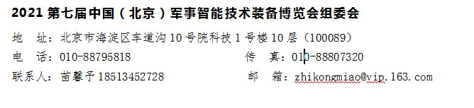 由中國指揮與控制學會主辦的2021第七屆中國(北京)軍事智能技術裝備博覽會定于2021年7月5日-7日在北京國家會議中心舉行。展覽面積將達到22000平方米,屆時將邀請政府部門、軍委機關、各大戰(zhàn)區(qū)、各軍兵種、軍事院校、武警、公安、交通、人防、航天、航空、兵器、船舶、電科集團等從事智能技術研究、生產制造、裝備采購和產業(yè)投資領域的30000多名代表到場參加。