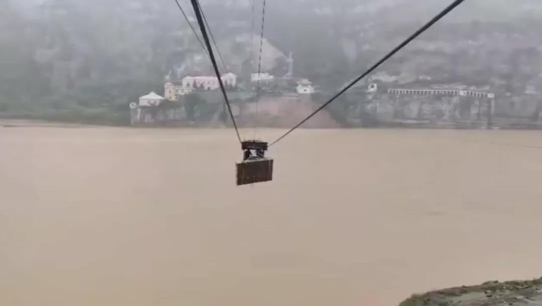 得知情況后,MAXHUB服務(wù)工程師小閆和小呂連夜驅(qū)車趕到了龍門水文站的河對(duì)岸,但因連續(xù)多日的強(qiáng)降雨,輪渡早已停運(yùn),唯一的交通只剩下“空中吊箱”。