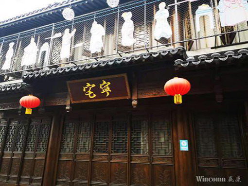 《南京喜事》的演出場所位于南京熙南里,一座挑高10米的宅院,占地超千平米的仿清南京城的建筑中。為真實還原古代南京大家族的生活場景,制作團隊耗費5078小時監(jiān)工制作,精心打磨了827樣道具,以及21間國風演出場地。