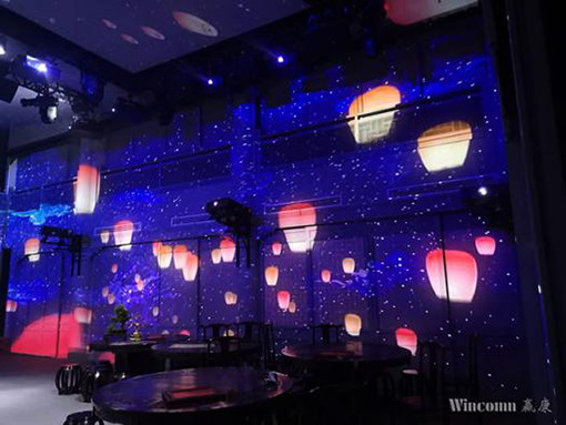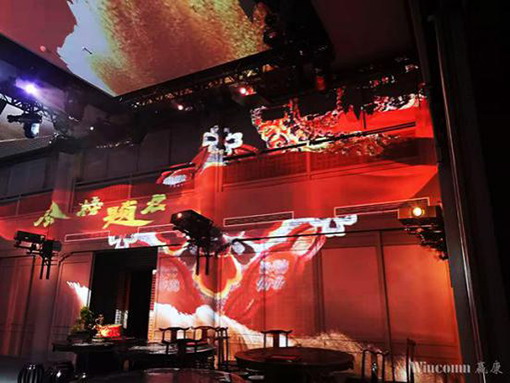 該演出空間的投影介質(zhì)非常多樣,天花、墻體、窗戶、樓閣等多種場景都涉及到投影,不同的成像介質(zhì),對投影要求極高,專業(yè)演出又對投影畫面有著近乎苛刻的一致性要求,要求圖像清晰銳利,始終如一,投影畫面需要保持高度的一致性。