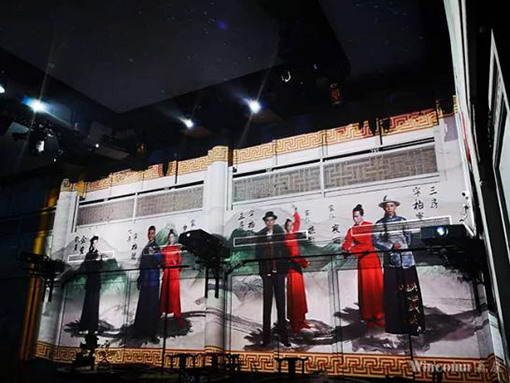 為了營造更廣闊的演出空間,讓靜態(tài)的建筑和布景“活”過來,也讓觀眾的參演體驗更加真實,《南京喜事》打造了一個近千平米的360°五面全沉浸環(huán)繞式投影空間。光影照四壁,古色古香的江南古宅,頓時拉開了時空之門,四壁和天花投影,五面聯(lián)動,整個空間流光溢彩,變化萬千,各種南京特色文化、風景建筑和歷史故事,近在眼前,觀眾或游走于漫天繁星的夜空下,或徜徉于江南山水的畫卷中,歷經(jīng)世事變遷,感受“人生八喜”。綺麗多變的場景讓觀眾目不暇接,仿佛置身夢境。