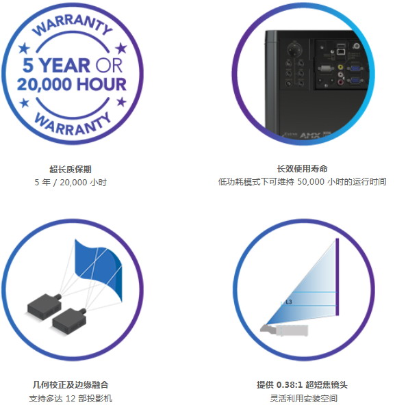 LWU1200-DS 擁有 4,000,000:1 的對比度和 WUXGA 分辨率,精確呈現(xiàn)細(xì)節(jié)豐富的視覺效果。當(dāng)檢測到 HDR 輸入時(shí),HDR 檢測功能自動設(shè)置圖像模式。內(nèi)置邊緣融合、幾何校正和色彩調(diào)整功能,支持輕松快捷地完成平面和柱面屏幕投影設(shè)置。與其他 DS 系列機(jī)型一致,LWU1200-DS 的質(zhì)保長達(dá) 5 年或 2 萬小時(shí)。