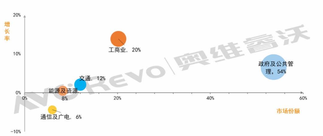 大屏幕拼接市場50%以上集中在政府及公共管理行業(yè),包括公檢法、學校和政府各級部門的指揮調(diào)度/監(jiān)控中心、會議室、展覽展示等應用,但2020年由于政府整體預算偏緊,增幅不高。工商業(yè)規(guī)模僅次于政府,且同比有所增長,主要是由于金融、制造業(yè)等信息化需求的增多,在LED小間距、LCD拼接產(chǎn)品的銷售同比均有超過10%的增長。但是通信和廣電行業(yè)占比小且萎縮,2020年LCD拼接的廣電融媒體項目也明顯減少。