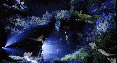 設(shè)計(jì)團(tuán)隊(duì)以叢林樹木、瀑布崖壁為天然銀幕,將一段奇景森林投影在上面,一幕幕CG動(dòng)畫般動(dòng)物王國(guó)故事在觀眾眼前上演。