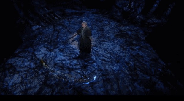 老戲骨西蒙·拉塞爾·比爾與精靈 Ariel同臺(tái)飚戲。普洛斯帕羅運(yùn)用書、法衣、魔杖,指揮精靈,讓觀眾感嘆數(shù)字化演員和真實(shí)演員一樣精彩。