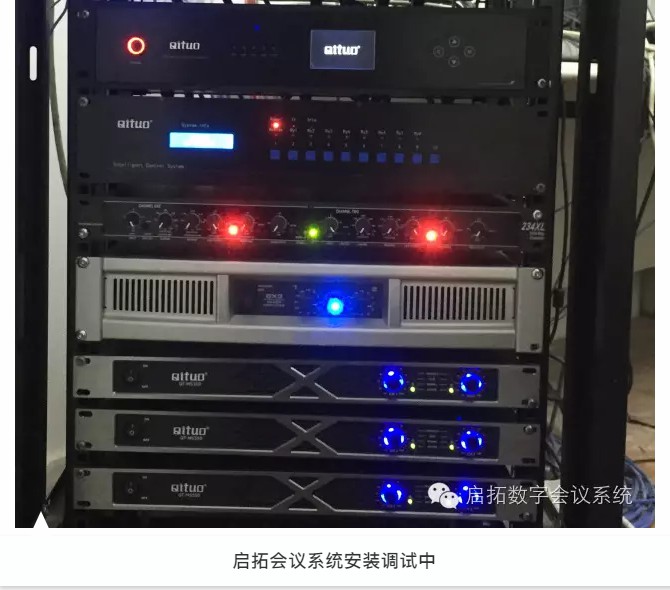 此次啟拓(QITUO)參與的項(xiàng)目為天津電氣科學(xué)研究院報(bào)告廳項(xiàng)目。啟拓(QITUO)為該音頻會(huì)議項(xiàng)目提供多套設(shè)備,包括會(huì)議系統(tǒng)和音箱擴(kuò)聲系統(tǒng)。項(xiàng)目主要使用啟拓?cái)?shù)字會(huì)議主機(jī)QT-S520M一臺(tái)、啟拓會(huì)議系統(tǒng)單元機(jī)QT-S522七只(其中主席機(jī)一只)、啟拓中央集成控制主機(jī)QT-ZK60WF一臺(tái)、啟拓時(shí)序電源控制器DY802 一臺(tái)、啟拓18寸低頻音箱QT-H18 兩臺(tái)、啟拓15寸全頻音箱QT-H15 兩臺(tái)、啟拓18寸低頻音箱功放QT-MS550 一臺(tái)、啟拓15寸全頻音箱功放QT-MS550 一臺(tái)、啟拓單12寸返聽音箱功放QT-MS350 一臺(tái)及其他設(shè)備若干。