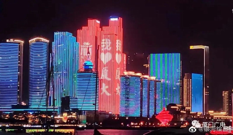 以點(diǎn)亮地標(biāo)的方式為廈大百年華誕
