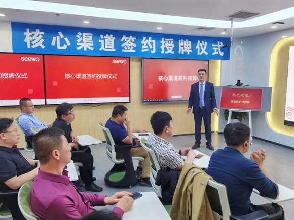 活動(dòng)當(dāng)天,共十二家核心渠道商應(yīng)邀出席簽約授牌儀式,希沃華北區(qū)管理層攜相應(yīng)產(chǎn)品線負(fù)責(zé)人一同出席了本次活動(dòng)。