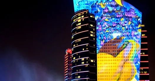 Laservision Mega Media團(tuán)隊,在迪拜節(jié)日城市(Festival City)設(shè)計創(chuàng)作了《兒童夢想》(A Child's Dream)。其受影像故事《A Child's Dream》的啟發(fā),以節(jié)日灣絕佳的水域、改造成數(shù)字畫布的4857平方米的洲際酒店墻面為投影,以經(jīng)典的敘事風(fēng)格講述故事,通過飛機(jī)、鯨魚、樹屋和跳舞的機(jī)器人等虛構(gòu)的元素串聯(lián)起孩子的想象之旅。