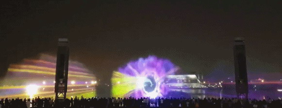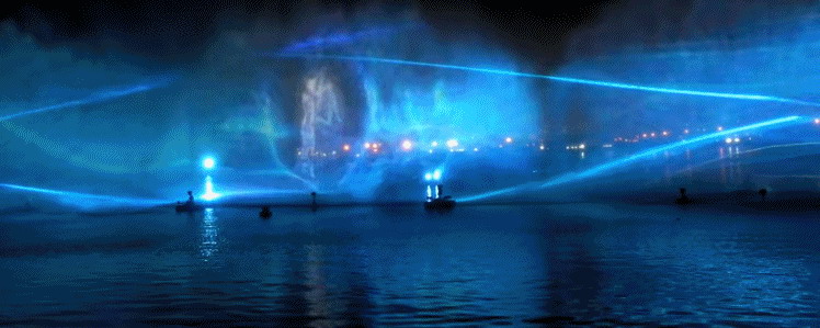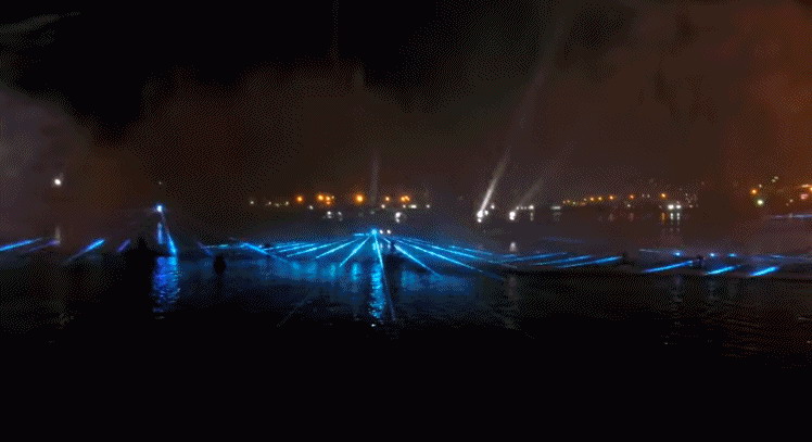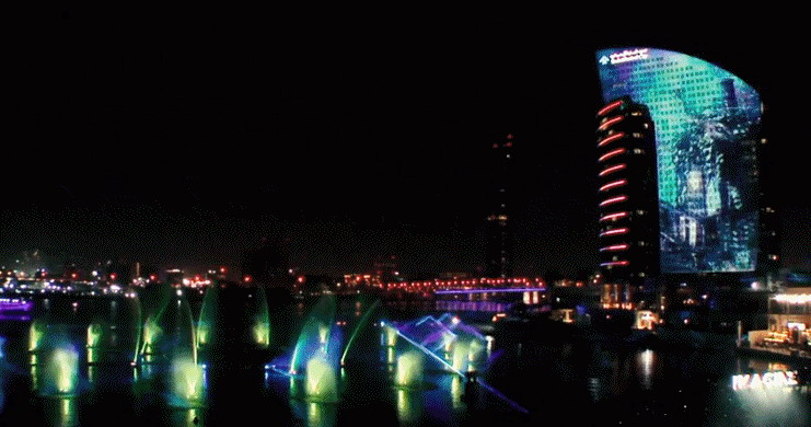 12臺投影機(jī)來營造美麗的海灣水幕,6個水幕共同組成一個寬68米、高13米的無縫巨幕,數(shù)百個LED燈光特效,360度的多媒體影像,全方位展示了“火、水、光、敬畏”為主題的現(xiàn)場表演。光影蜿蜒、盤旋,釋放火花,像水中的蛟龍,濺起水花,引得觀眾頻頻尖叫,不愧是節(jié)日城市,好一派熱鬧歡騰。在光的助力下,這里的水沸騰著,釋放出鮮有的能量,隨著夜幕降臨,一場水秀、一個故事正在上演。