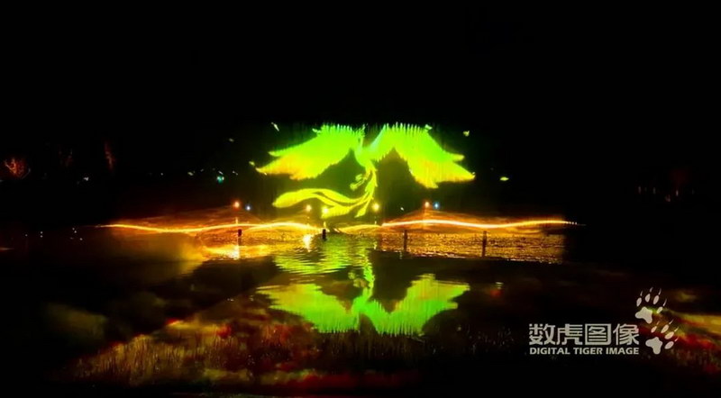 當(dāng)巨大的水幕鋪灑在湯山金烏溫泉公園的湖面上,當(dāng)五彩奇幻的上古世界如空中飛來的畫卷在夜幕下緩緩展開,點亮了湯山的夜空,也創(chuàng)建了一個全新大型聲光水幕觀影新地標(biāo)。