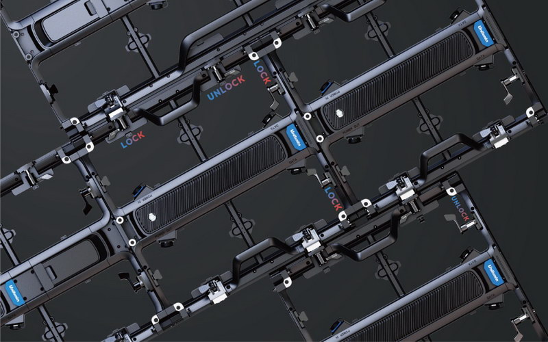 在用戶尤為關(guān)注的安裝與維護(hù)方面,洲明URMIII系列從客戶角度出發(fā),采用一擊鎖定鎖扣、模組助推功能、箱體結(jié)構(gòu)兼容地磚等創(chuàng)新設(shè)計(jì),可真正實(shí)現(xiàn)單人安裝、拆卸、模組自動(dòng)定位與便捷維護(hù),幫助客戶大幅減少因頻繁拆裝產(chǎn)生的時(shí)間、人工與維護(hù)成本,讓運(yùn)輸、安裝、使用、維護(hù)全過程更為便捷,為用戶提供極致產(chǎn)品體驗(yàn)。
