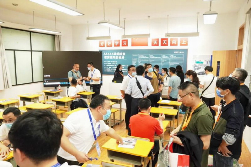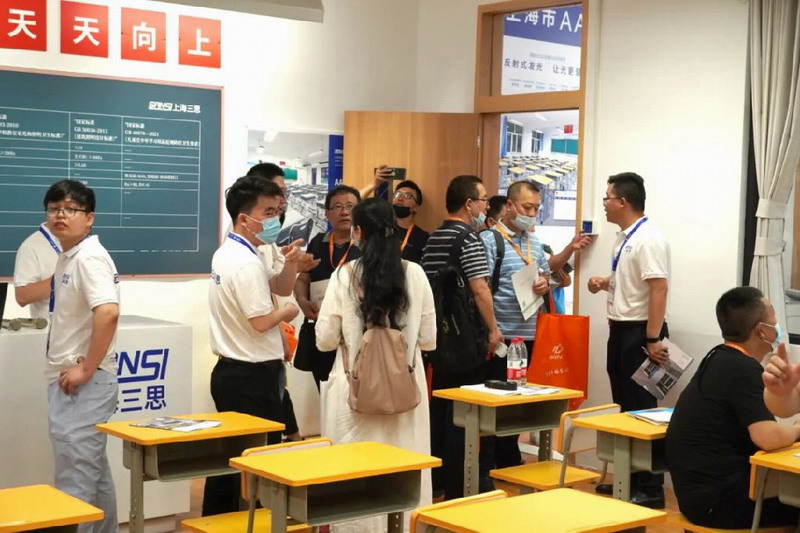 在展會現場,觀眾通過實物對比及燈光體驗,現場直接感知三思反射式發(fā)光技術教室燈和黑板燈的創(chuàng)新之處,以及AAAAA教室的優(yōu)越健康光環(huán)境,現場屢次出現火爆場面。