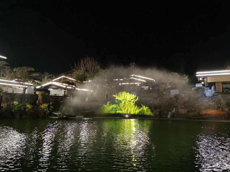 被譽為“沂蒙桃花源、臨沂后花園”的茶芽山,孤峰秀出、茶香四溢。這里不僅擁有深厚的歷史文化底蘊,更孕育了深厚的禪茶文化,如今這片紅色熱土迎來了蝶變。為建設(shè)“茶山國家鄉(xiāng)村公園”,茶芽山田園綜合體項目應(yīng)運而生,結(jié)合山、水、林、田、湖生態(tài)保護修復(fù)工程,打造含田園農(nóng)業(yè)、茶芽文旅、康復(fù)醫(yī)療、樂活宜居和花果樂園五大板塊,形成地域鮮明的新型田園綜合體。與此同時,10臺NEC哈勃系列激光投影機應(yīng)用在此,通過流光溢彩的投影秀,在池塘堤岸和水幕上投射出美輪美奐的光影故事,為游客講述著茶芽山的歷史文化和禪茶傳說。
