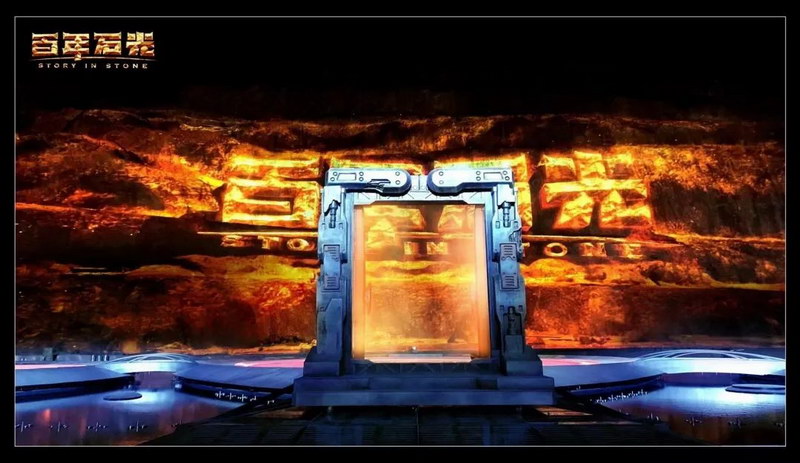 為了讓觀眾在觀看演出時能獲得身臨其境的感受,導(dǎo)演組和視覺設(shè)計團(tuán)隊(duì)采用“山體成像”的設(shè)計理念來呈現(xiàn)精彩演出。但不同于其他光影秀,《百年石光》的成像并非承接于平坦良好的實(shí)體成像面,而是一個有百年歷史、人為開采留下的巨大巖壁。