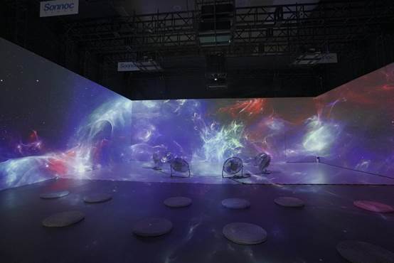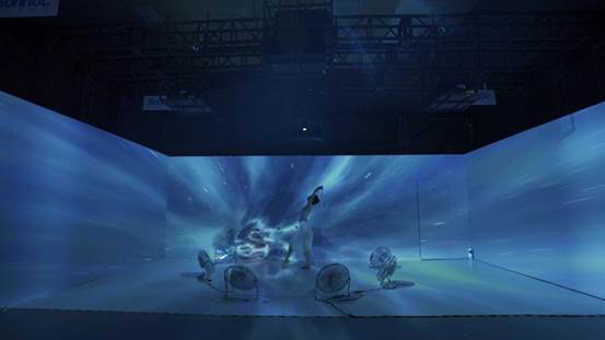 強大的視覺沖擊力深深震撼著現(xiàn)場觀眾,遙不可及的宇宙好像近在眼前,配合舞蹈演員的輕紗曼舞讓整個現(xiàn)場極具美感。