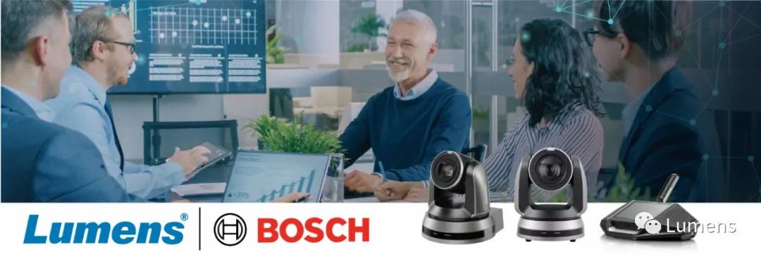 Bosch DICENTIS系統控制Lumens攝像機——Lumens PTZ相機擁有平滑、高速馬達、精確的白平衡和智能對焦,是專業會議室的理想選擇。Bosch DICENTIS系統可控制Lumens攝像機,會議系統發言的時候,按話筒按鍵,攝像機會自動跟蹤,并且整個過程可以自動化。