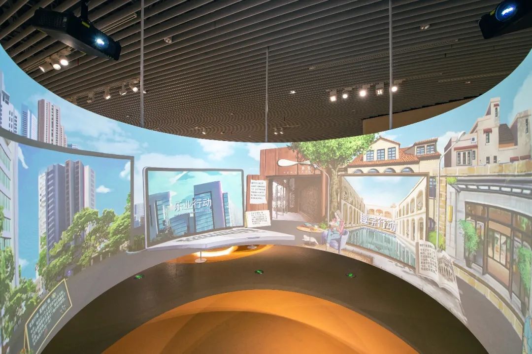 順展線前行,又到了一處弧形大幕,上海市民的15分鐘社區(qū)生活在這里上演。公園綠地、城市書房、體育場館,松下PT-FRZ120C工程投影機的高色準(zhǔn)雙驅(qū)動固態(tài)激光光源和強光補正功能,細(xì)膩精準(zhǔn)還原真實場景,搭配弧形大幕帶來的強烈臨場感,在高樓大廈和弄堂小巷之間穿梭,不覺被上海生活的幸福感所感染。