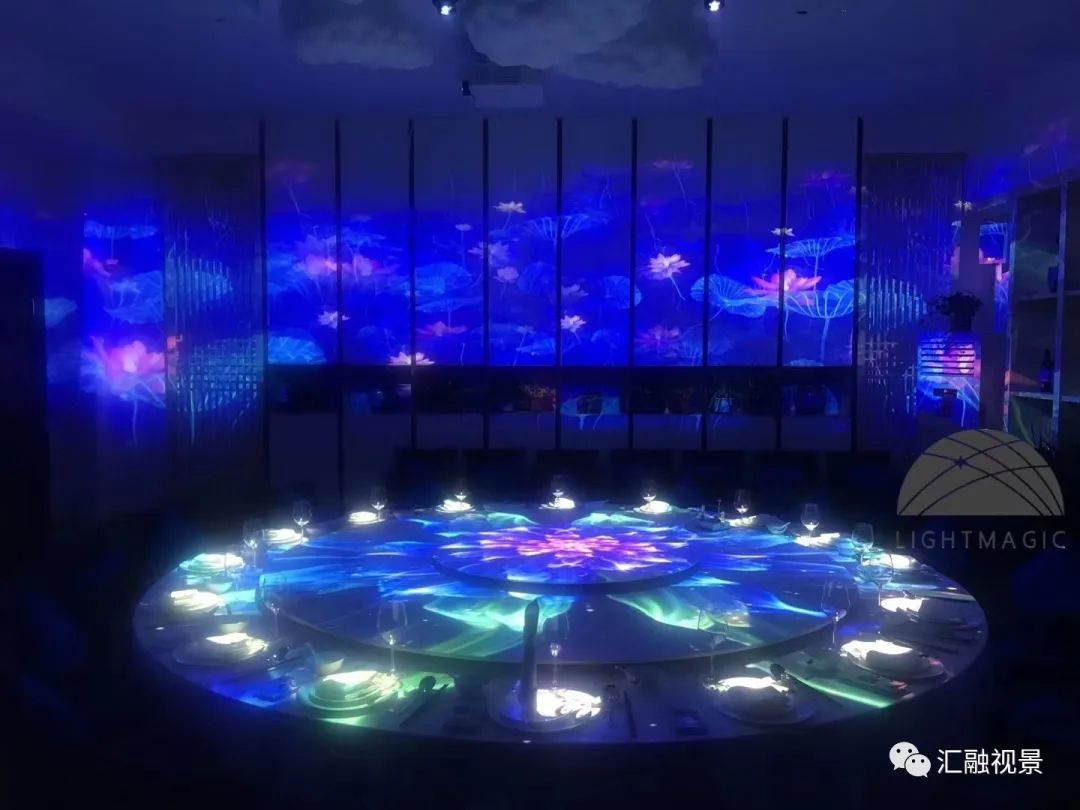 自從梵高沉浸式展覽走紅后,沉浸式愈發(fā)受人追捧,沉浸式餐廳也脫穎而出,通過投影顯示設(shè)備多聯(lián)化搭建,將環(huán)境全方位地利用起來,使用餐者不光能品嘗佳肴的色香味,也能同時體驗豐富多彩的視覺內(nèi)容?赏队俺霾煌L格的畫面,打造出不同主題的餐廳。