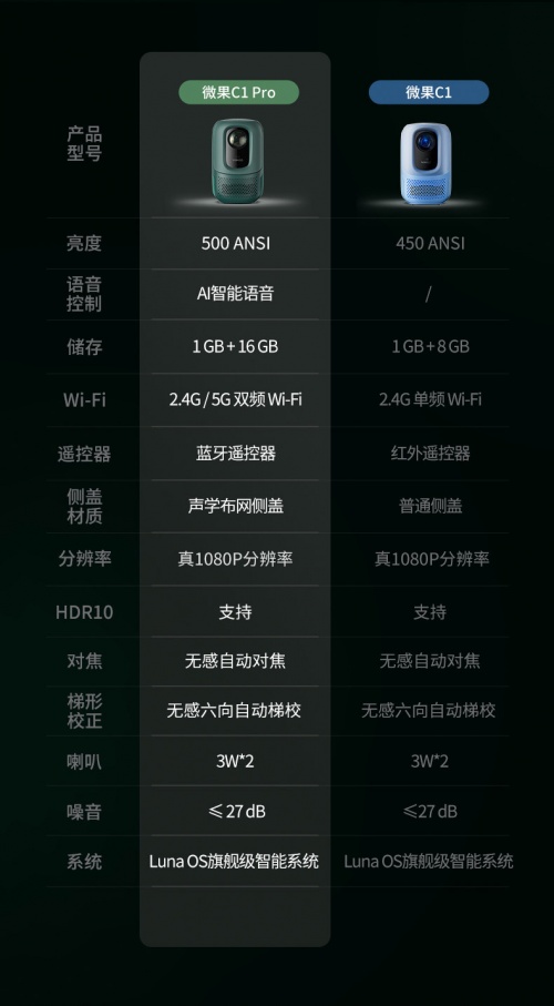 近日,微果投影又上新了:微果C1 Pro智能投影儀。