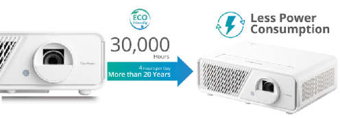 Y5擁有非凡的30000小時(shí)光源壽命,每天使用 4小時(shí),使用時(shí)長(zhǎng)可超過(guò)20年,相較于傳統(tǒng)燈泡及激光投影機(jī),功耗更低,更加省電,節(jié)能環(huán)保;