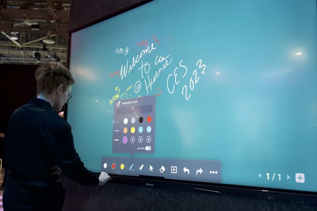 如今,受疫情等因素影響,線上辦公需求呈現(xiàn)爆發(fā)趨勢,正成為新的經(jīng)濟增長點。海信Vision Hub智慧平板作為提升企業(yè)辦公效率的生產(chǎn)工具,集遠程會議、書寫、音視頻等多種功能于一體,在海外市場備受歡迎。在2023 CES展現(xiàn)場,參展觀眾借助海信Vision Hub智慧平板體驗了書寫批注、智能表格等功能,流暢、智能的體驗引來連連贊嘆。據(jù)現(xiàn)場工作人員介紹,該款產(chǎn)品支持本地會議或遠程視頻會議多種模式,且白板書寫流暢、音視頻能力出色,已在海外多個國家和地區(qū)的教育、金融、政企、零售等領(lǐng)域入駐,賦能場景多樣化轉(zhuǎn)型升級。