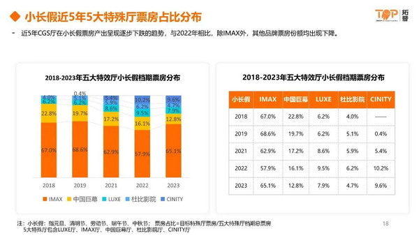 特效廳票房規模:2023年特效廳票房份額達到20.4%,創歷史新高。疫情前特殊廳份額呈現逐年走高的趨勢,疫情結束后,才繼續延續了這一趨勢。