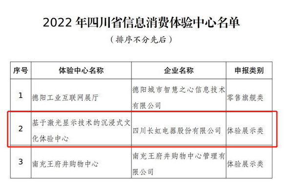 2023年5月,長虹激光電視榮獲“綿陽市十大創(chuàng)新產(chǎn)品”,旗艦產(chǎn)品全色激光電視D300亮相2023年綿陽市科技創(chuàng)新大會。