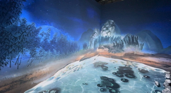 《白石花園》展區(qū),以齊白石大師的花木畫作為核心,極光系列投影將山谷間竹林還原地惟妙惟肖,林間靜謐之美躍然眼前,叫人為之心馳神往。