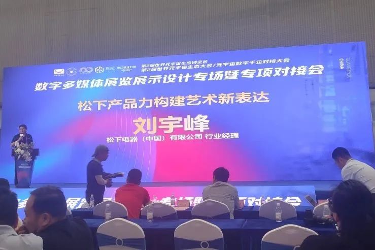 在同期舉辦的“第二屆元宇宙生態(tài)大會數(shù)字多媒體展覽展示設(shè)計專場暨專業(yè)對接會“中,松下展覽展示行業(yè)經(jīng)理劉宇峰先生發(fā)表了《松下產(chǎn)品力構(gòu)建藝術(shù)新表達》主題演講,對于松下系統(tǒng)工程投影機在沉浸式數(shù)字藝術(shù)中的應用進行了精彩的介紹和案例分享。