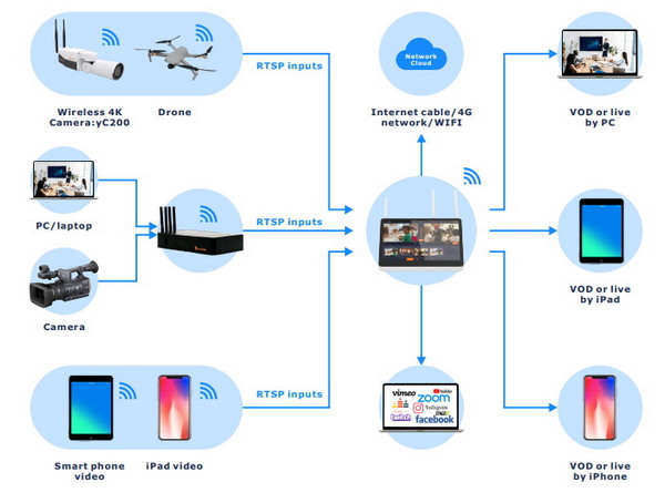 yCat Plus無線便攜錄播系統(tǒng)集成了無線音頻模塊、電源模塊、4G模塊、操控模塊,整套設(shè)備重量不超過10公斤,無需復雜繁多的外接設(shè)備,輕簡設(shè)計讓應用更簡單。一個人便能完成全場多機位的導播控制,高品質(zhì)直播的環(huán)境搭建,解決直播受場地限制難題,給用戶帶來全新的視聽體驗。同時,yCat Plus無線便攜錄播支持無線網(wǎng)絡(luò)傳輸,無需布線即可實現(xiàn)信號傳輸記錄,為企業(yè)移動式直播會議、直播培訓減負。