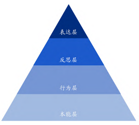 情感化設(shè)計(jì)系統(tǒng)在人性化設(shè)計(jì)的研究基礎(chǔ)之上由三個(gè)不同但相互聯(lián)系的層級(jí)組成。這三個(gè)層級(jí)即本能層、行為層和反思層,分別對(duì)應(yīng)人們?cè)诿鎸?duì)場(chǎng)景時(shí)的感官層面、效能層面和理解層面。它們之間呈現(xiàn)出逐級(jí)深化的關(guān)系,從人們最初對(duì)外部環(huán)境的本能反應(yīng),到對(duì)所處場(chǎng)景做出的適度行為,再到通過合理的思索和判斷來適應(yīng)環(huán)境,追求從感性視角探索設(shè)計(jì)對(duì)于用戶情感化的深層影響。