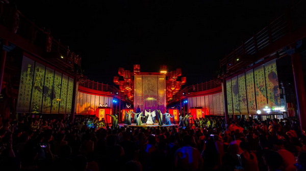 “何須更有桃源境,只此瑯琊最傾心”。位于臨沂的瑯琊古城,于2024年初盛大開(kāi)園,以驚艷之姿成為臨沂文旅的新地標(biāo),樼鸸懦侵械摹绊斄鳌毖菟図(xiàng)目之一——《只此瑯琊》是全國(guó)首創(chuàng)的立體沉浸式演藝,觀眾在如夢(mèng)如幻、若即若離的行進(jìn)中,與上百位演員共同品讀瑯琊風(fēng)華。這部沉浸大劇的第三幕,使用全息紗幕投影的方式,帶觀眾回溯東晉,見(jiàn)證王羲之大婚、與顏真卿的水墨對(duì)決,為游客呈現(xiàn)一場(chǎng)風(fēng)雅的視覺(jué)盛宴。