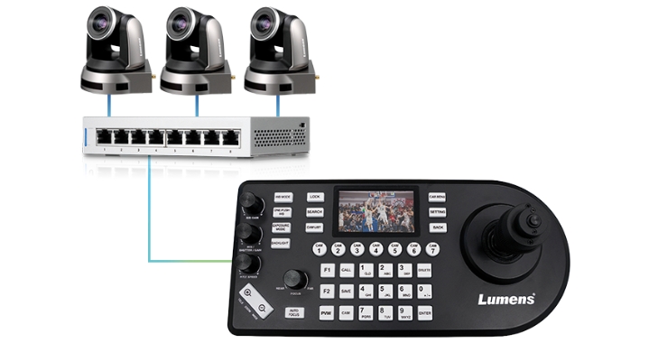 Lumens產品總監Steven表示:「IP攝像機鍵盤控制器VS-KB35的誕生,Lumens重新定義了攝像機控制器,不僅提供實時預覽屏幕和加重式操控游戲桿,更以經濟實惠的價格打入市場,將用戶體驗推向另一個新格局!筕S-KB35鍵盤控制器支持標準控制協議,包括VISCA、VISCA Over IP和ONVIF,透過以太網絡、RS-232或RS-422連接,可與多家廠牌的專業IP攝像機兼容。安裝人員只需一條Cat-5配線連接到設備,透過直流電或網絡 (PoE) 供電,簡化安裝流程。