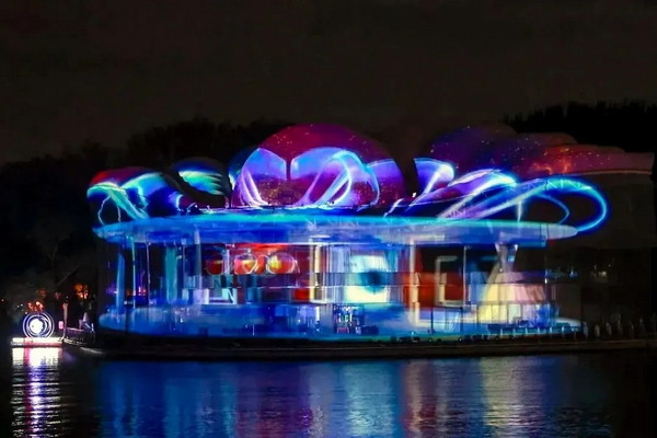 上海展覽中心主會場的南廣場投影秀是目前國內(nèi)最大的單體戶外沉浸式投影秀,投影面積達到了4500平方米。