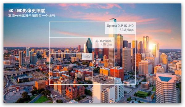 奧圖碼CKL850T采用TI DLP 0.65英寸DMD芯片,分辨率為3840×2160,創造8.3百萬像素細膩影像。在工程應用中4K分辨率優勢在于畫面更細膩,讓觀眾可以更近距離觀看。