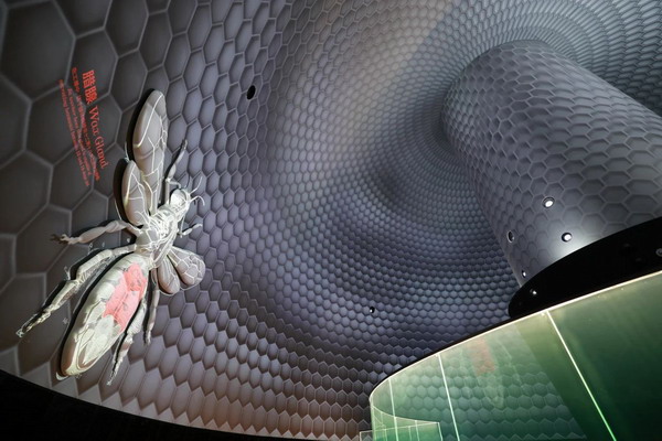 [從頂層到地面的六層空間中],游客將深入探索蜜蜂與植物間相互適應(yīng)與共同進化的微妙關(guān)系,感受蜜蜂戰(zhàn)勝大黃蜂的奇妙策略、口糧分配的智慧、優(yōu)生優(yōu)育的選擇,以及族群內(nèi)分工明確、緊密協(xié)作的繁衍模式等豐富的科普內(nèi)容。