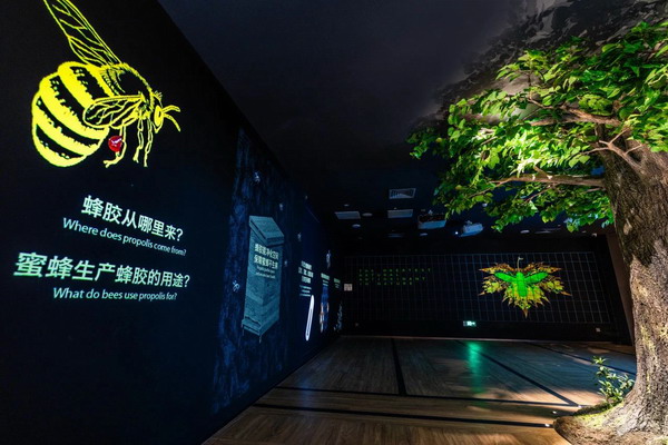 館內(nèi)通過多個主題展區(qū)——花粉區(qū)、蜂蜜區(qū)、蜂蠟區(qū)和蜂膠區(qū)等,生動還原了蜜蜂的生存環(huán)境和生活習性,同時詳細展示了蜜蜂采集花粉、釀造蜂蜜的全過程。結(jié)合先進的光影技術(shù),展區(qū)內(nèi)容被賦予鮮活的生命力,讓游客仿佛置身于蜜蜂的世界,親身感受自然的奇跡與匠心。