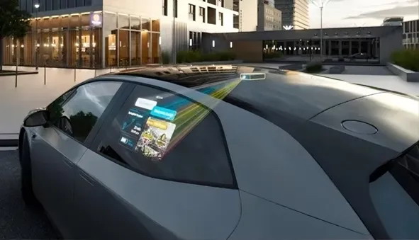 大陸集團展示了其車窗投影顯示解決方案,包括一個迷你投影設備、一個可以完全電動調(diào)光以充當投影表面的側(cè)窗,以及智能軟件。當系統(tǒng)啟動時,車窗會變暗,以確保圖像顯示效果;當車輛停放時,可以與周邊環(huán)境通信并顯示重要信息,顯示內(nèi)容可進行個性化定制。