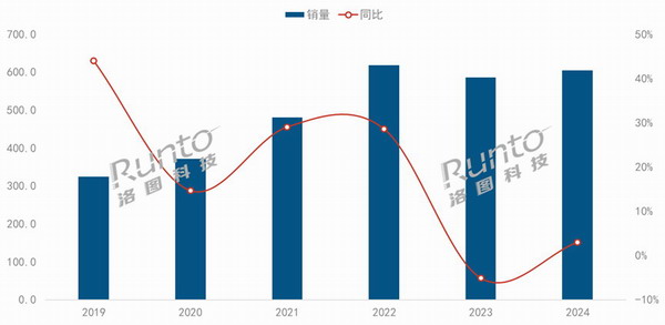 中國市場規(guī)模在2023年發(fā)生近年來的首次衰退之后,在2024年再一次站到600萬臺(tái)以上。